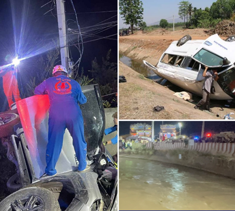สภ.ธัญบุรี ได้รับแจ้งว่า มีรถกระบะพุ่งตกไปในคลองรังสิตประยูรศักดิ์ (คลอง13) ม.5 ต.บึงน้ำรักษ์ อ.ธัญบุรี จ.ปทุมธานี คาดว่าน่าจะมีผู้เสียชีวิตหลายราย หลังรับแจ้งจึงรีบเดินทางไปตรวจสอบที่เกิดเหตุ พบคนงานต่างด้าวจำนวน 7 ราย ว่ายน้ำหนีตายขึ้นมาบนบก โดยส่วนใหญ่ได้รับบาดเจ็บกันเพียงเล็กน้อย มีเพียง 2 คนที่ได้รับบาดเจ็บ เจ้าหน้าที่กู้ภัยนำส่งโรงพยาบาลลำลูกกา