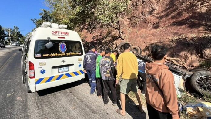 เมื่อเวลา 09.41 น. วันที่ 30 ธ.ค.2568 พ.ต.ท.ประดิพันธ์ อินทร์หน่อ สารวัตร(สอบสวน) สภ.ชาติตระการ จ.พิษณุโลก รับแจ้งอุบัติเหตุรถกระบะเสียหลักพลิกคว่ำ ถนนเขาค้อม้า ซึ่งเป็นเส้นทางลัดจากอำเภอชาติตระการ จ.พิษณุโลก ไปยังอำเภอทองแสนขันธ์ จ.อุตรดิตถ์ มีผู้เสียชีวิตและได้รับบาดเจ็บหลายราย จึงรุดไปตรวจสอบพร้อม หน่วยกู้ภัยพิษณุโลก มูลนิธิประสาทบุญสถาน