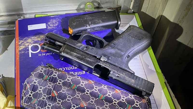 มีบาดแผลที่หัวเข่าขวา โดยมีของกลาง เป็นอาวุธปืนยี่ห้อ GLOCK ขนาด 9 มม. ซองกระสุนขนาด 9 มม. 1 อัน ซองอาวุธปืนพก 1 ซอง และกระเป๋าคาดเอวสีน้ำตาลเข้ม 1 ใบ