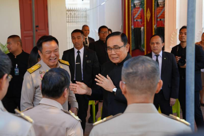 โดยช่วงที่นายอนุทิน เดินทางมาที่วัดราชบพิธฯ เป็นช่วงเวลาเดียวกับที่พลเอก ประยุทธ์ จันทร์โอชา องคมนตรี เดินทางมาด้วย และได้พบกัน โดยนายอนุทินได้ยกมือไหว้พลเอกประยุทธ์และได้มีการพูดคุยสอบถามสารทุกข์สุกดิบกัน ถามไถ่เรื่องสุขภาพ โดยบรรยากาศช่วงที่พูดคุยนายอนุทิน และพลเอกประยุทธ์มีสีหน้ายิ้มแย้ม